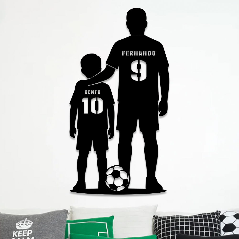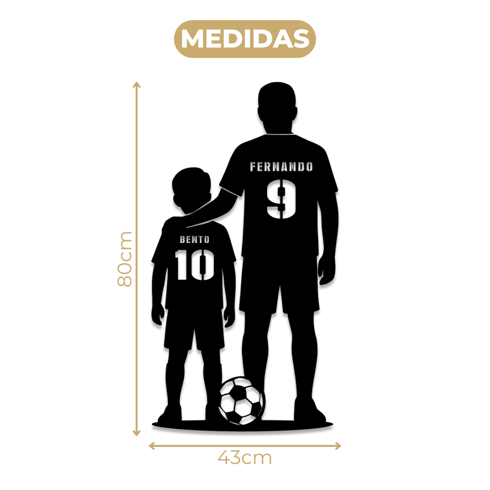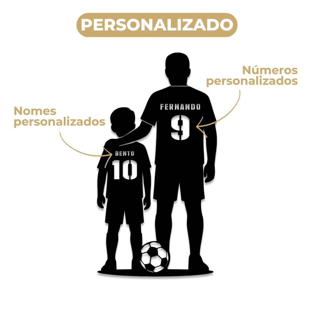 Uma peça única, totalmente personalizada com o nome e o número da camisa do Pai e Filho.