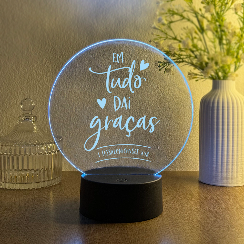 Luminária LED em Acrílico - 1 Tessalonicenses 5:18 - Em Tudo Dai Graças