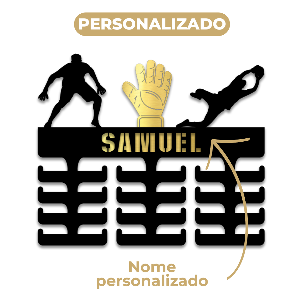 Porta Medalhas Goleiro Futebol Masculino Personalizado em MDF com Acrílico